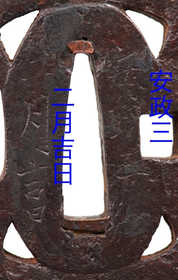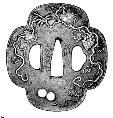 Masayoshi had four sons the first, Tokutaro died in Bunka 5, 1808. His second son was Kinzô (Tadayoshi), his third was again named Tokutaro (Masatoku) and the fourth was Sennosuke (Masamori). It is my belief that the tsuba in question was made by the second son Tadayoshi.