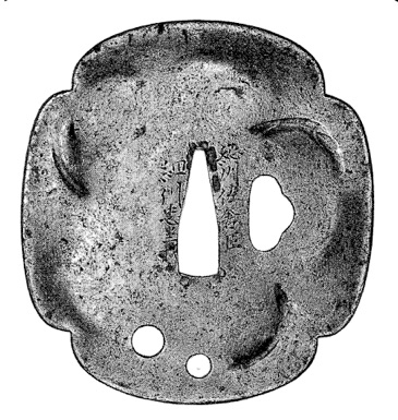 While pondering these things I happened by pure accident upon the tsuba below by Katsusada in the Shin-Katchushi Meikan by Sasama. Certainly not an exact match but we can see that the idea was out there. I have to say I like both expressions of this idea very much.